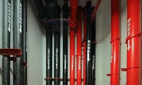 消防喷淋系统增加100mm宽的黄色色环,方便与消火栓系统区分。